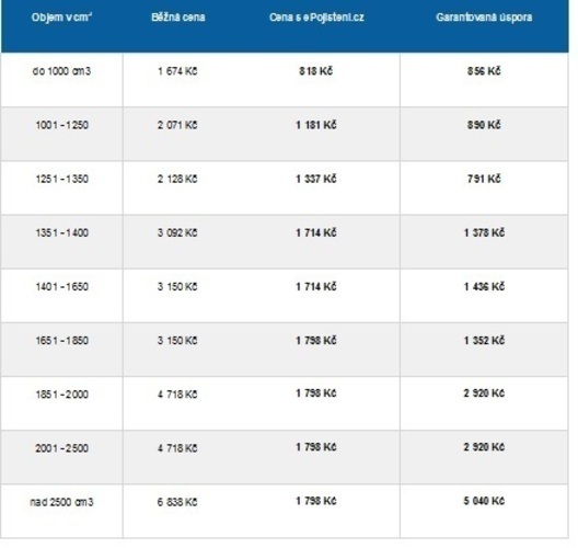 Běžný smrtelník však cenu havarijního pojištění a povinného ručení řeší, protože může ročně ušetřit až několik tisíc korun. Proto jsme pro vás ve spolupráci se srovnávacím portálem ePojisteni.cz připravili přehlednou tabulku s modelovými příklady kubatury, ze které jasně vyplývá, kolik ročně ušetříte výběrem výhodného povinného ručení: